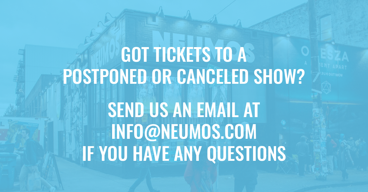 Due to COVID-19 concerns, all Neumos shows through summer 2021 have been postponed or cancelled. If you have tickets to an upcoming show, please keep an eye out for an email from Eventbrite regarding date changes and refund information. Thank you for you patience and understanding during this difficult time.